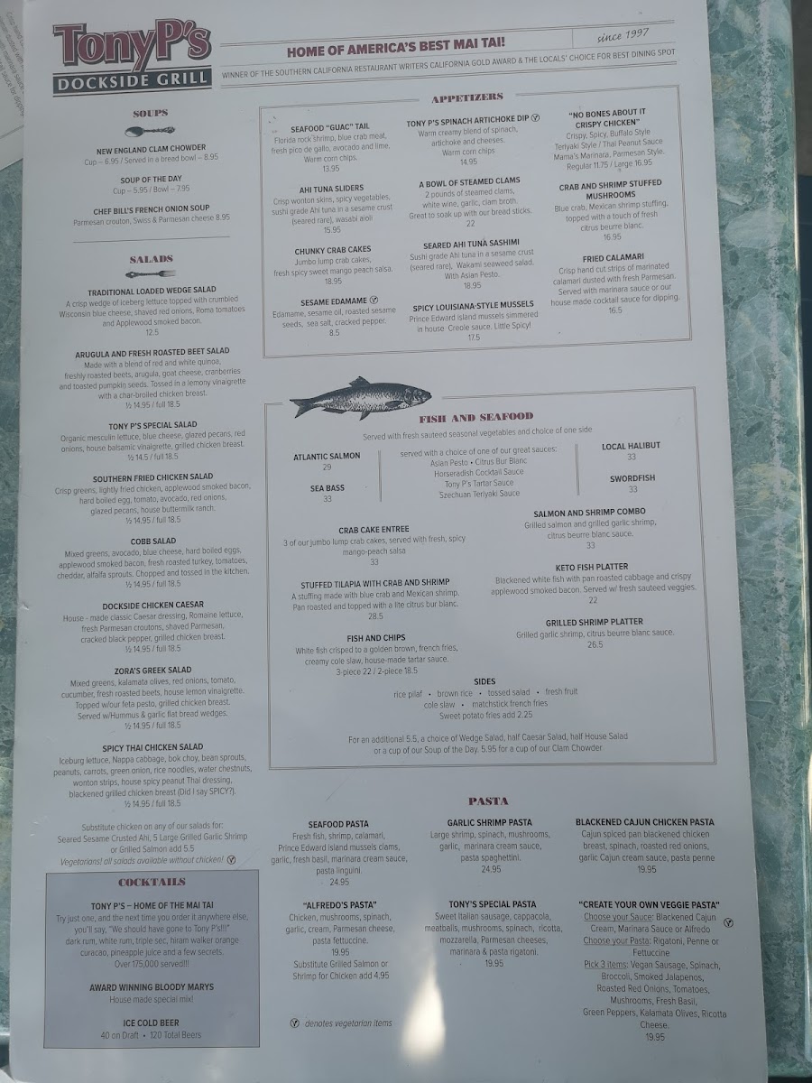 Nestled at 4445 Admiralty Way in the picturesque Marina Del Rey, Tony P’s Dockside Grill offers a culinary experience that perfectly marries delightful flavors with serene waterfront views. Renowned for its diverse menu, it features signature dishes like the creamy garlic shrimp pasta and the mouthwatering pulled pork barbecue sandwich.